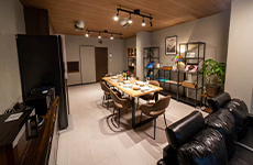 館内には障子や畳など日本の趣を残しつつ、広々としたキッチンダイニングでは、グループやご家族でくつろぎの時間をお過ごしいただけます。